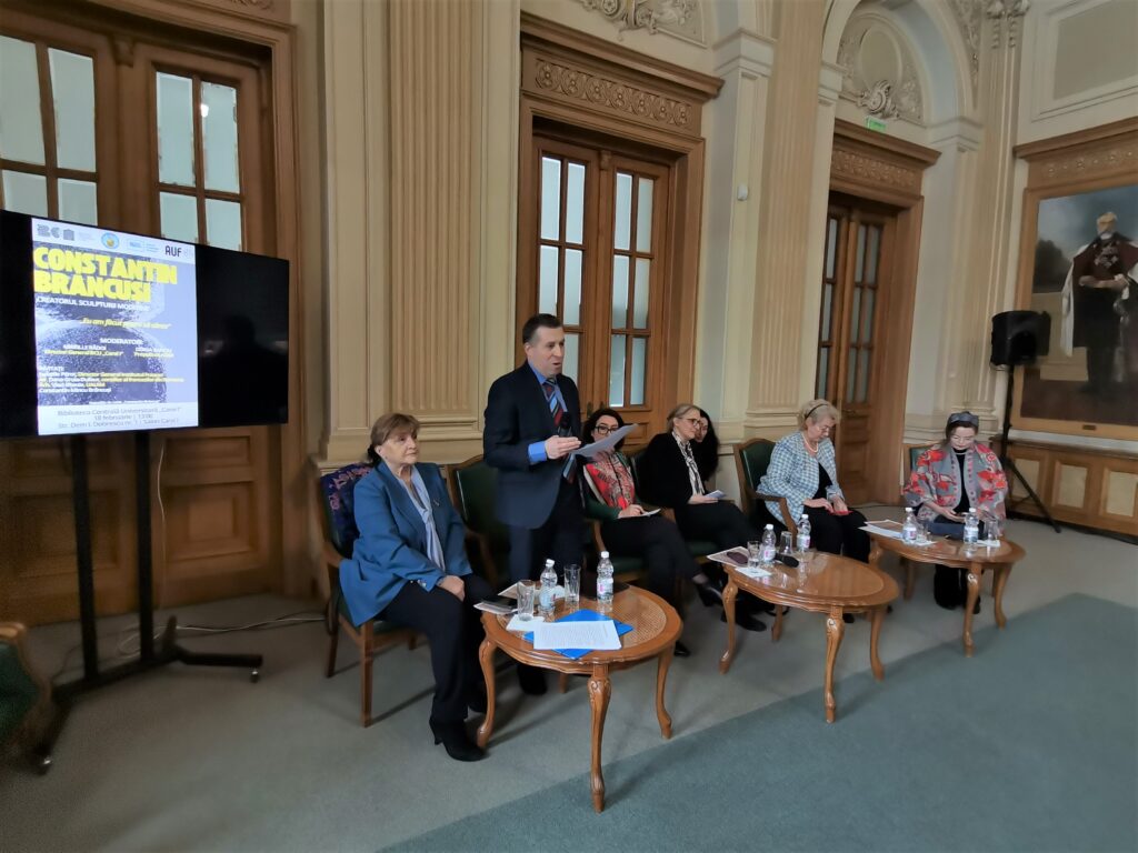 La rândul său, Conf. univ. dr. Mireille Rădoi, Director General al BCU „Carol I”, a explicat sensul organizării evenimentului: „Brâncuși este un nume de patrimoniu național și universal. Există însă un aspect mai puțin confortabil pe care îl conștientizăm cu acest prilej: ne recunoaștem pe deplin valorile, de multe ori, abia după ce creatorii lor nu mai sunt printre noi sau după ce au fost validați în afara granițelor. Brâncuși nu este o excepție izolată. Istoria culturală românească ne arată același tipar: Caragiale, Enescu, Celibidache. Fiecare a trebuit să își găsească împlinirea și recunoașterea într-un context extern pentru ca, ulterior, să fie asumat fără rezerve și aici. Dacă ne dorim să vorbim despre ambasadori culturali ai României, trebuie să discutăm despre infrastructură, despre acces la resurse, despre platforme de afirmare și despre încredere acordată la timp mai degrabă decât despre elogii postume. Tinerii creatori, pe lângă admirație, au nevoie de condiții, de instituții care să funcționeze coerent, predictibil și responsabil și au nevoie de spații în care să poată construi fără a fi obligați să plece pentru a fi validați. Biblioteca Centrală Universitară „Carol I” a fost fondată prin viziunea Regelui Carol I pentru a susține formarea tinerimii universitare. Într-o societate matură, investiția în educație și cultură este o strategie pe termen lung. Dacă dorim ca viitorii creatori să rămână și să se dezvolte aici, trebuie să le oferim instrumentele necesare cultivării lor aici. Pentru a celebra personalități precum Brâncuși este necesar să învățăm din parcursul lor. Nu ne putem permite să ne descoperim geniile doar retrospectiv. Responsabilitatea noastră este să susținem valorile autentice atunci când sunt în formare, nu doar atunci când sunt deja consacrate. Acesta este sensul demersului nostru de astăzi”.